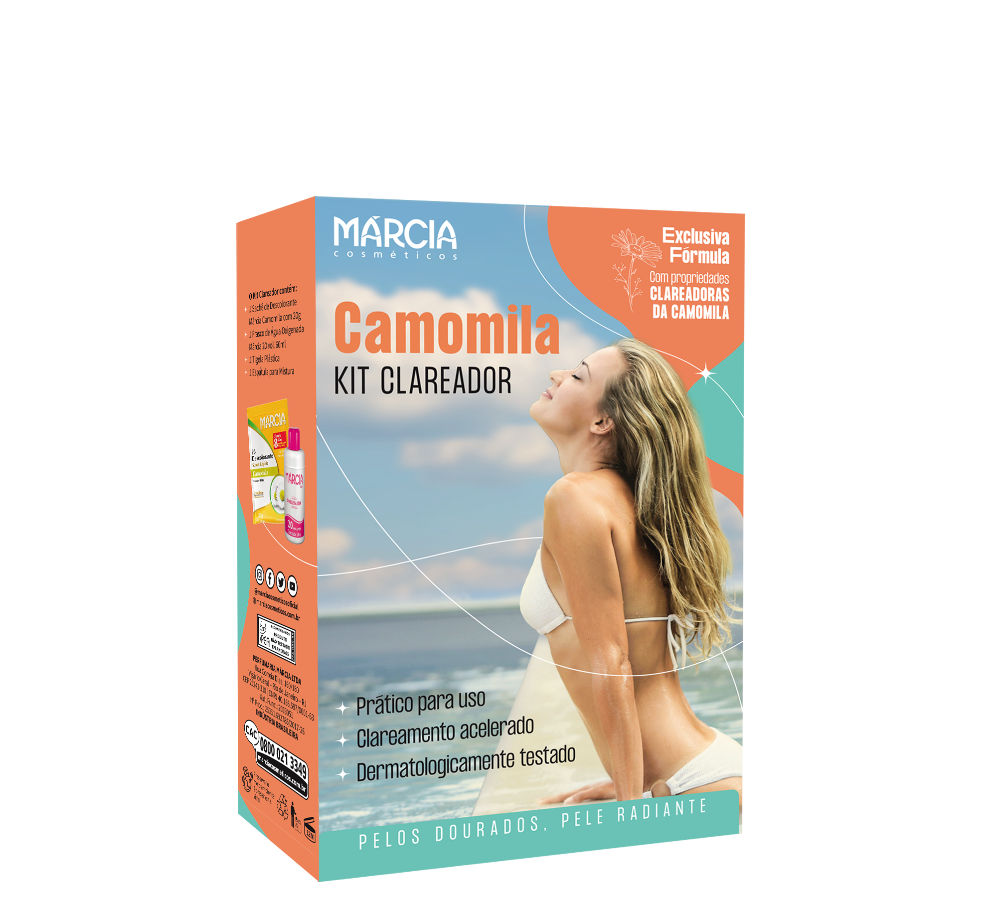 O Kit Clareador de Pelos Márcia Camomila foi desenvolvido para quem busca clarear os pelos do corpo com suavidade e conforto, deixando a pele com um toque luminoso e uniforme. Sua fórmula com extrato natural de camomila tem ação calmante, ajudando a minimizar a irritação durante o processo de descoloração, enquanto garante um resultado delicado e natural.